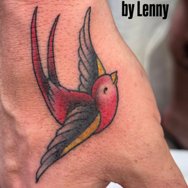 Lenny's an OG traditional tattoo artist whose two decades of experience shows in the quality of his designs and his tattoos. Lenny takes both walk-ins and appointments.